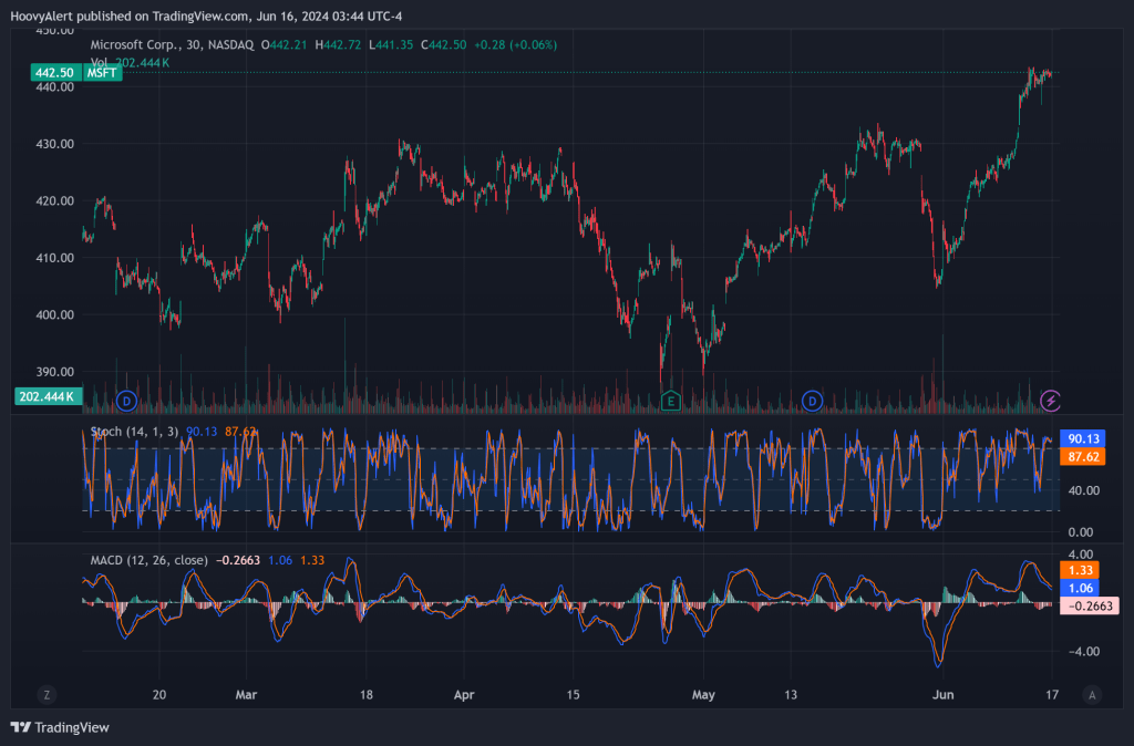 Moving Average Convergence/Divergence indicator used alongside the Stochastic Oscillator indicator.