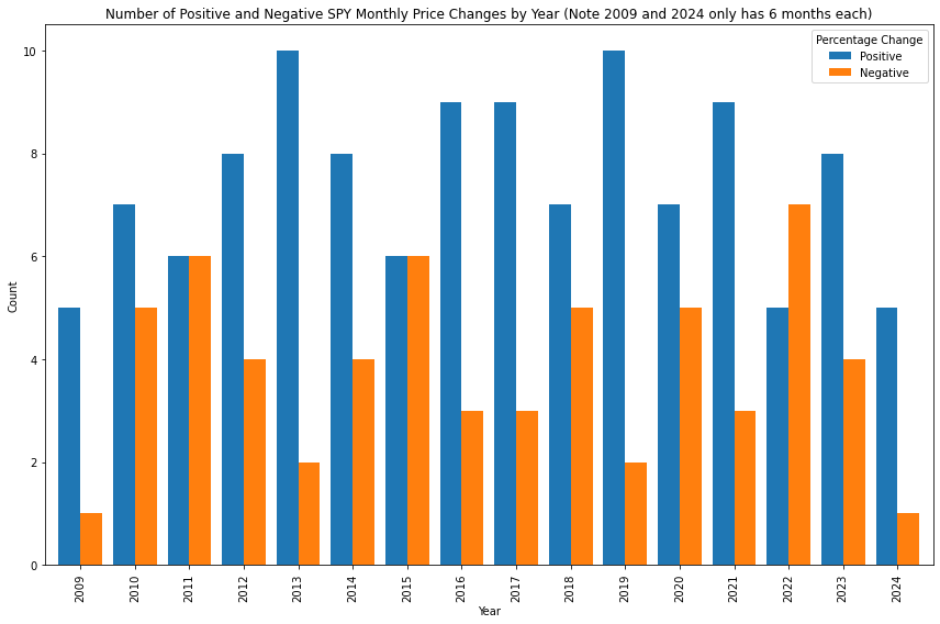 - Months like July and November stand out with a higher count of positive changes, suggesting that investing in SPY at the start of these months has historically had a higher probability of net positive gain by the end of the month.